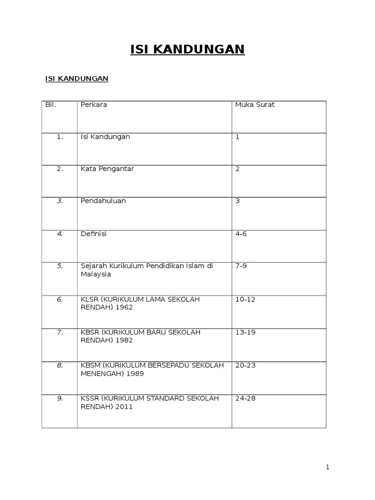 7 Sekolah Menengah Kebangsaan menggunakan bahasa Malaysia sebagai bahasa pengantar. Sehubungan itu artikel ini cuba melihat sejauh mana Pendidikan Islam dilaksanakan dalam Pendidikan di Malaysia serta mengkaji kandungan-kandungan Kurikulum Pendidikan Islam yang terdapat di dalam Kurikulum Pendidikan Malaysia dari sebelum merdeka KLSR sehingga KSSRDEFINISI DEFINISI KURIKULUMPengetahuan terus berkembang. Sejarah kurikulum pendidikan islam di malaysia 7-9 6.